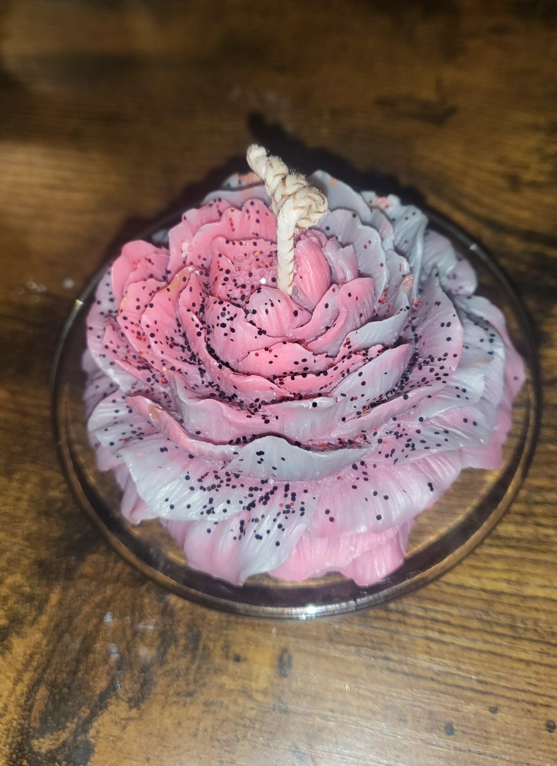 🌹 Design : Une pivoine réaliste aux teintes roses et blanches, ornée de touches scintillantes.