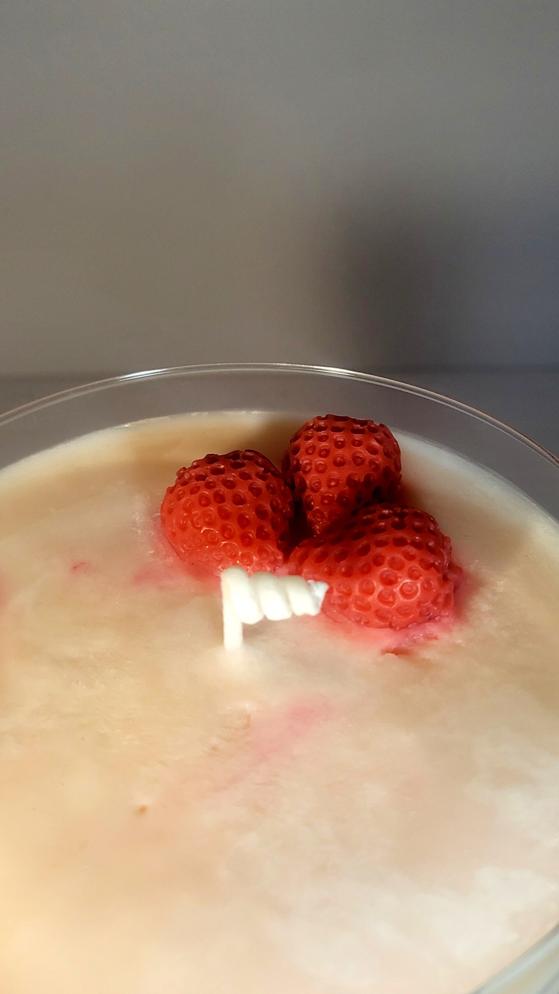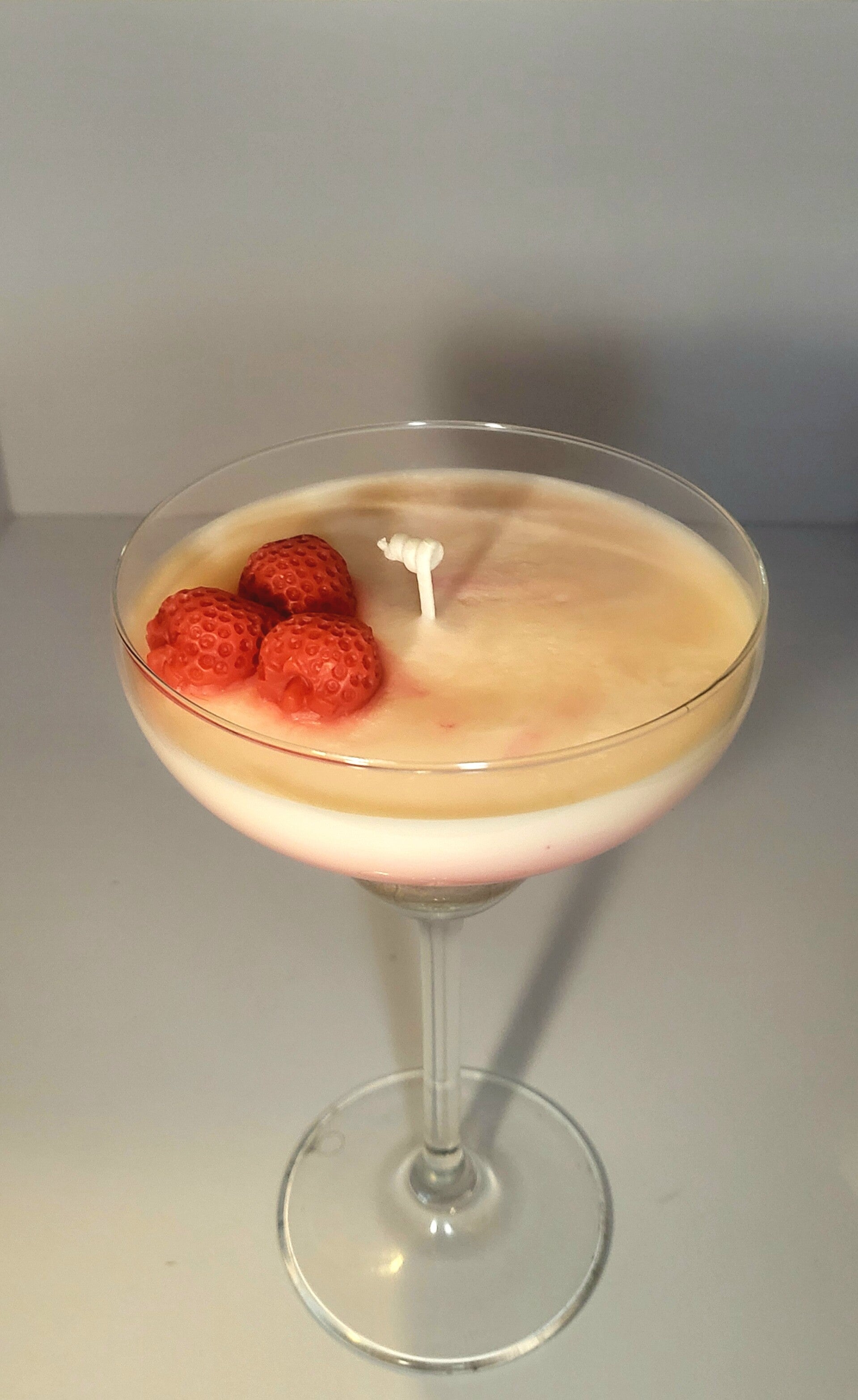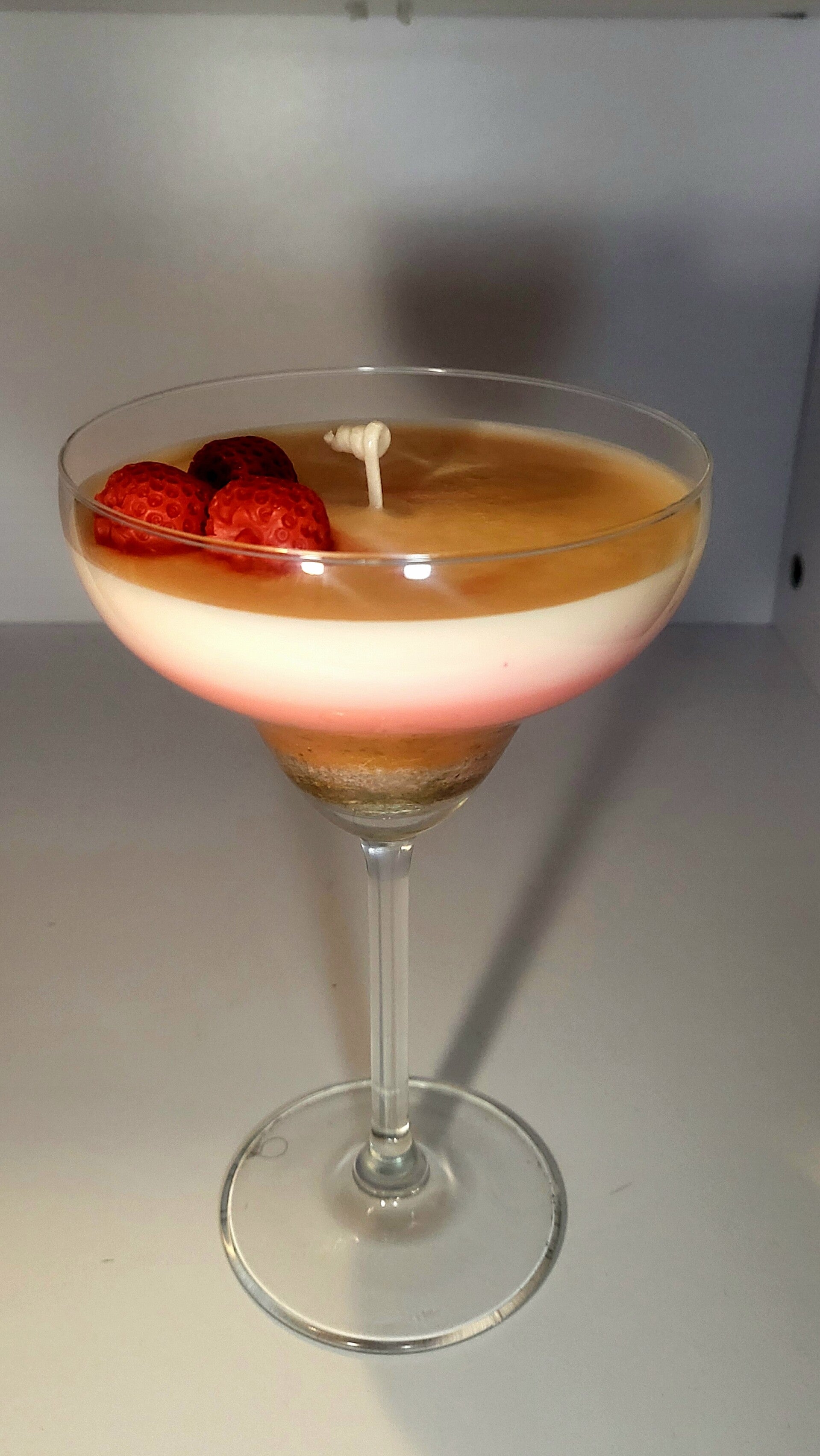 #Fraises – Une bougie unique dans un élégant verre à cocktail, aux délicieuses notes de FraisesFudge. Avec ses teintes rouge et ses troispetitesFraises, elle est une invitation au voyage.