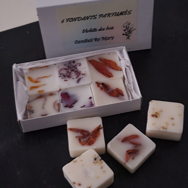 Découvrez nos fondants parfumés artisanaux « Pétales de Douceur », réalisés à la main dans notre atelier.