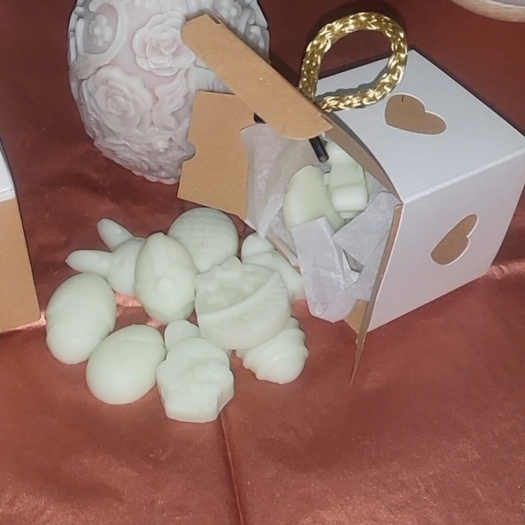 Laissez la magie de Pâques s'inviter dans votre intérieur avec cette boîte élégante contenant 14 petits fondants parfumés en forme de lapins et d'œufs. Une création artisanale idéale pour parfumer délicatement votre maison tout en apportant une touche festive et gourmande !