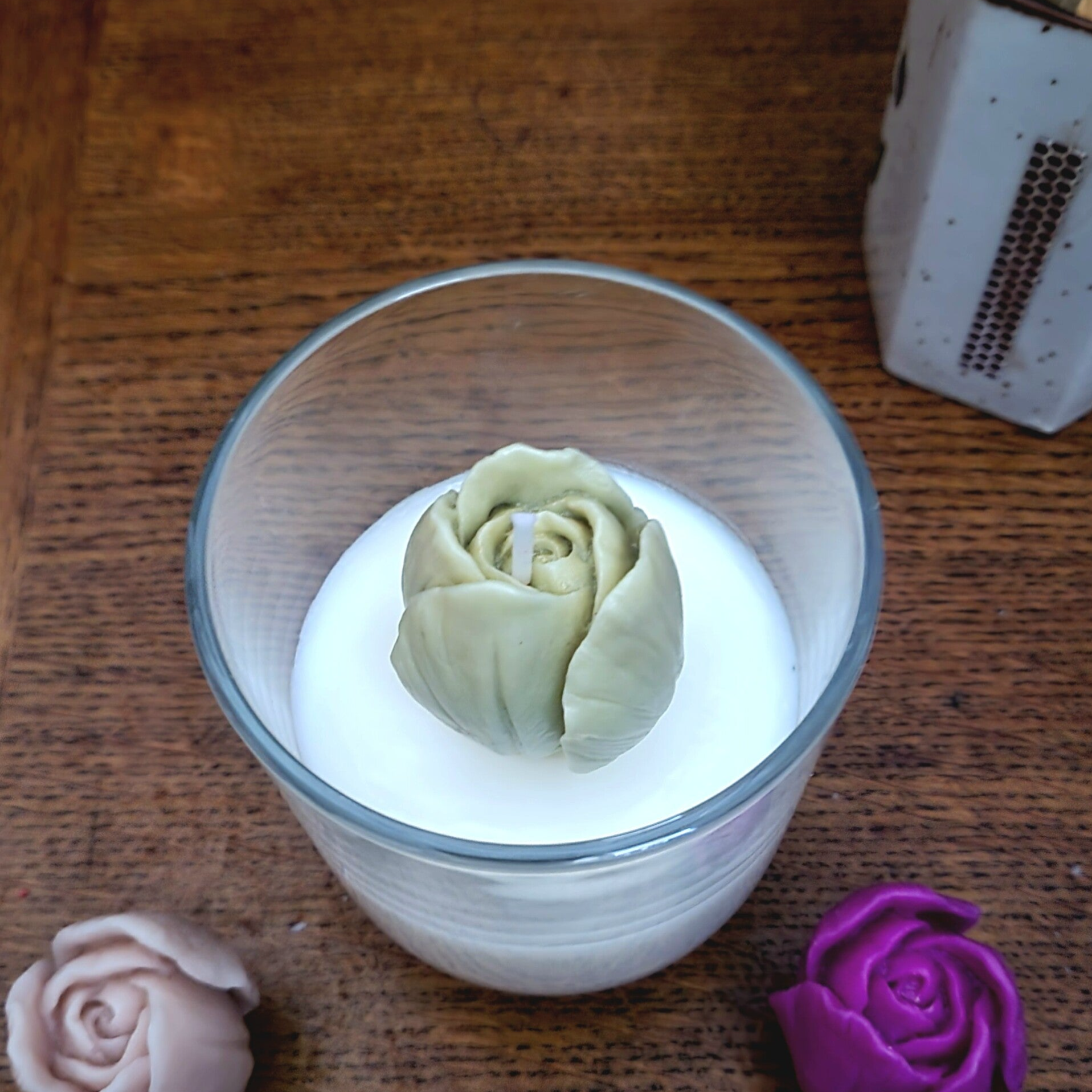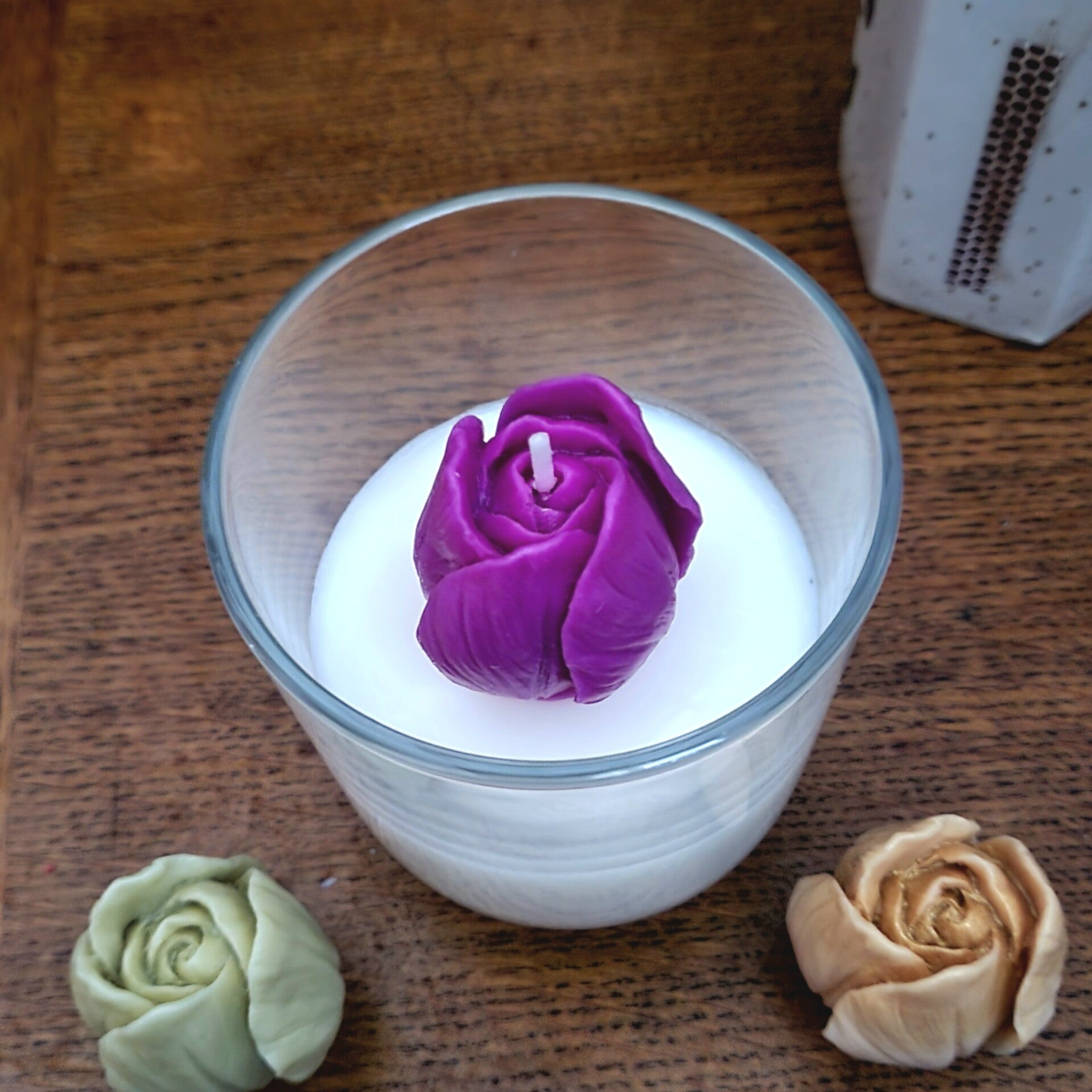 Une bougie élégante et raffinée, ornée d’une délicate fleur en cire. Disponible en quatre couleurs, elle apportera une touche unique et parfumée à tout intérieur.