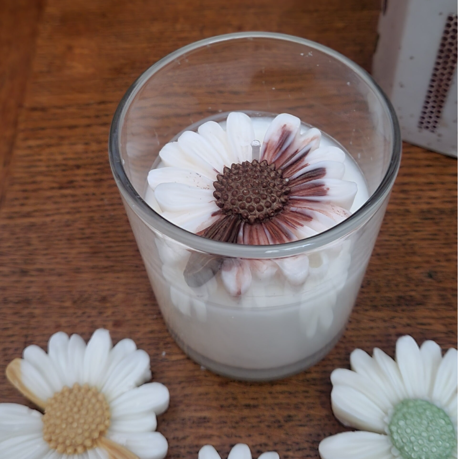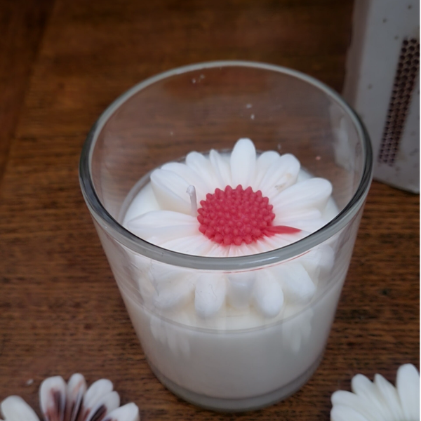 Une bougie élégante et raffinée, ornée d’une délicate fleur en cire. Disponible en quatre couleurs, elle apportera une touche unique et parfumée à tout intérieur.