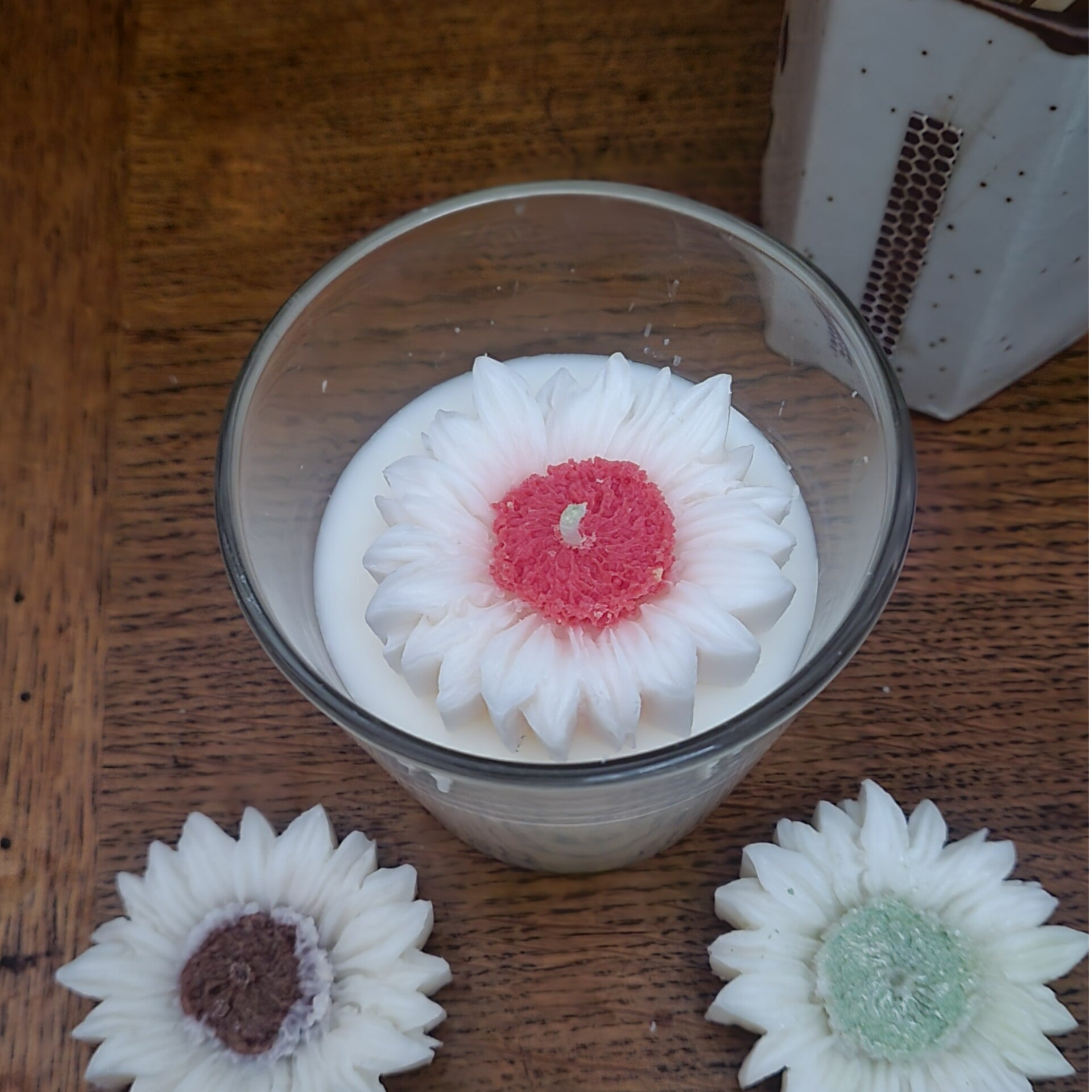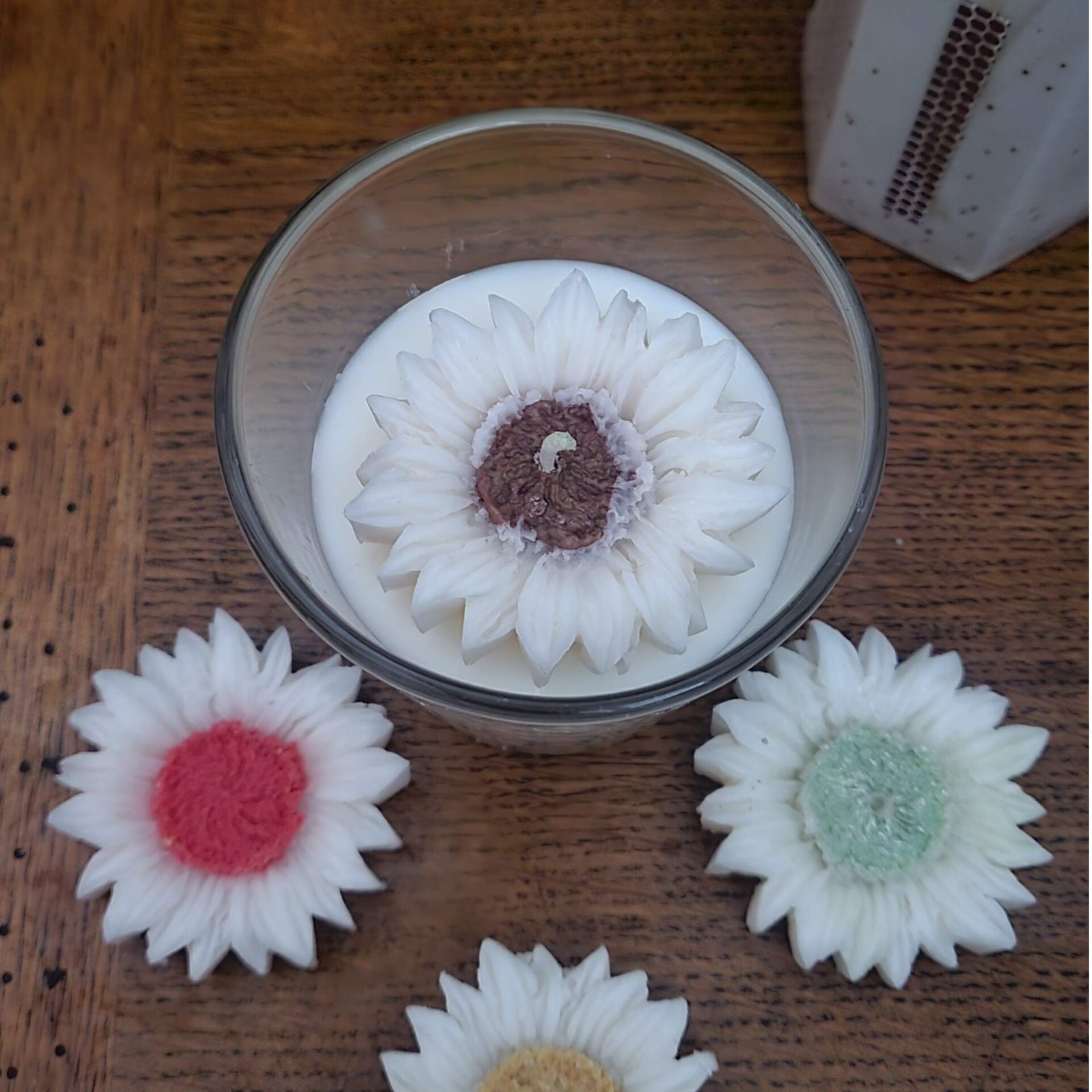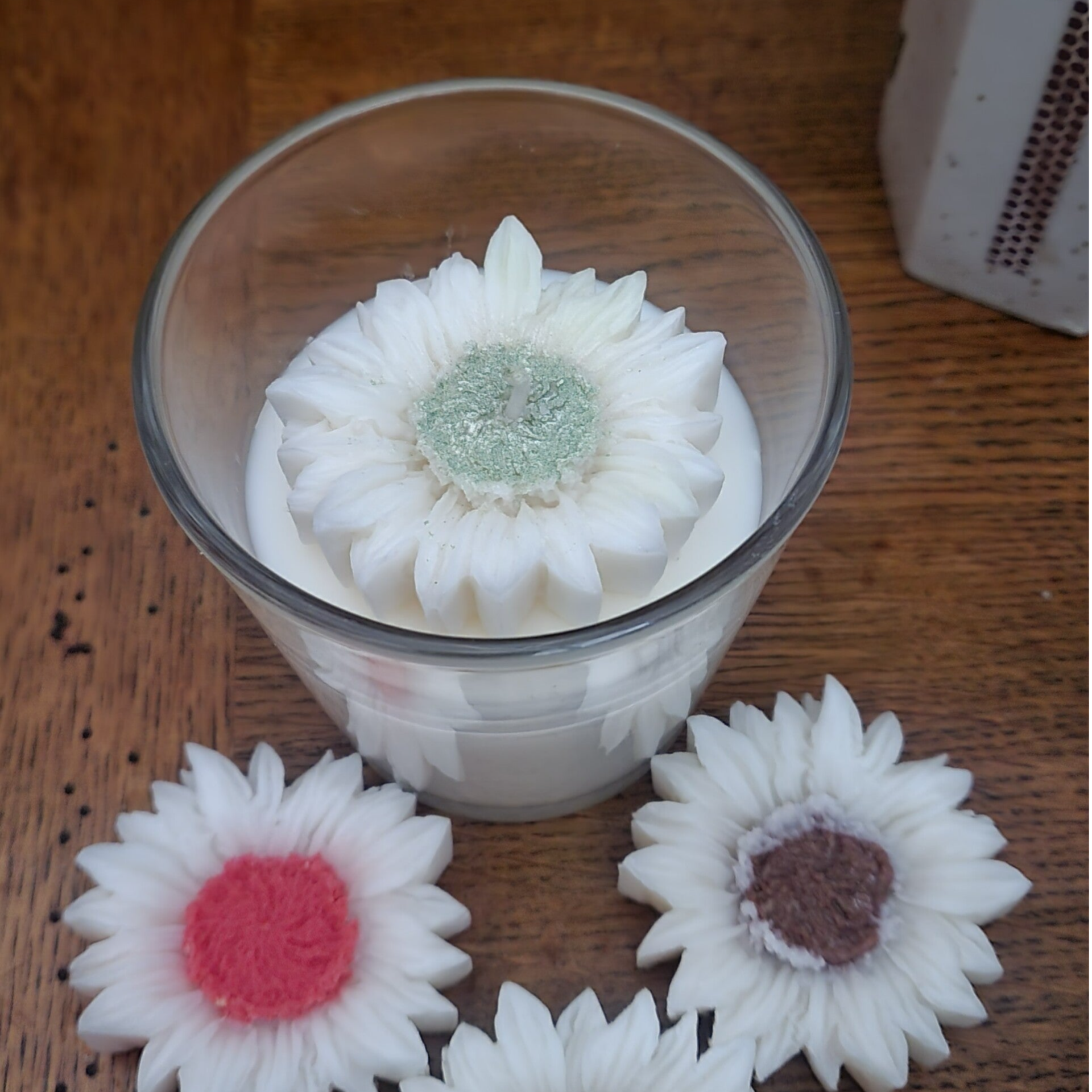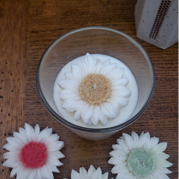 Une bougie élégante et raffinée, ornée d’une délicate fleur en cire. Disponible en quatre couleurs, elle apportera une touche unique et parfumée à tout intérieur.