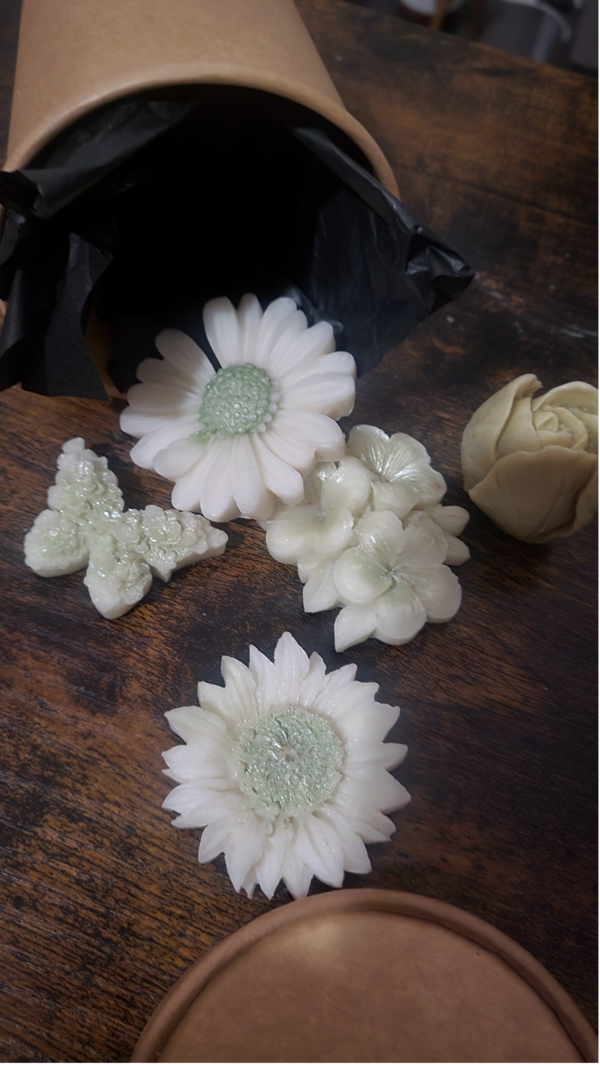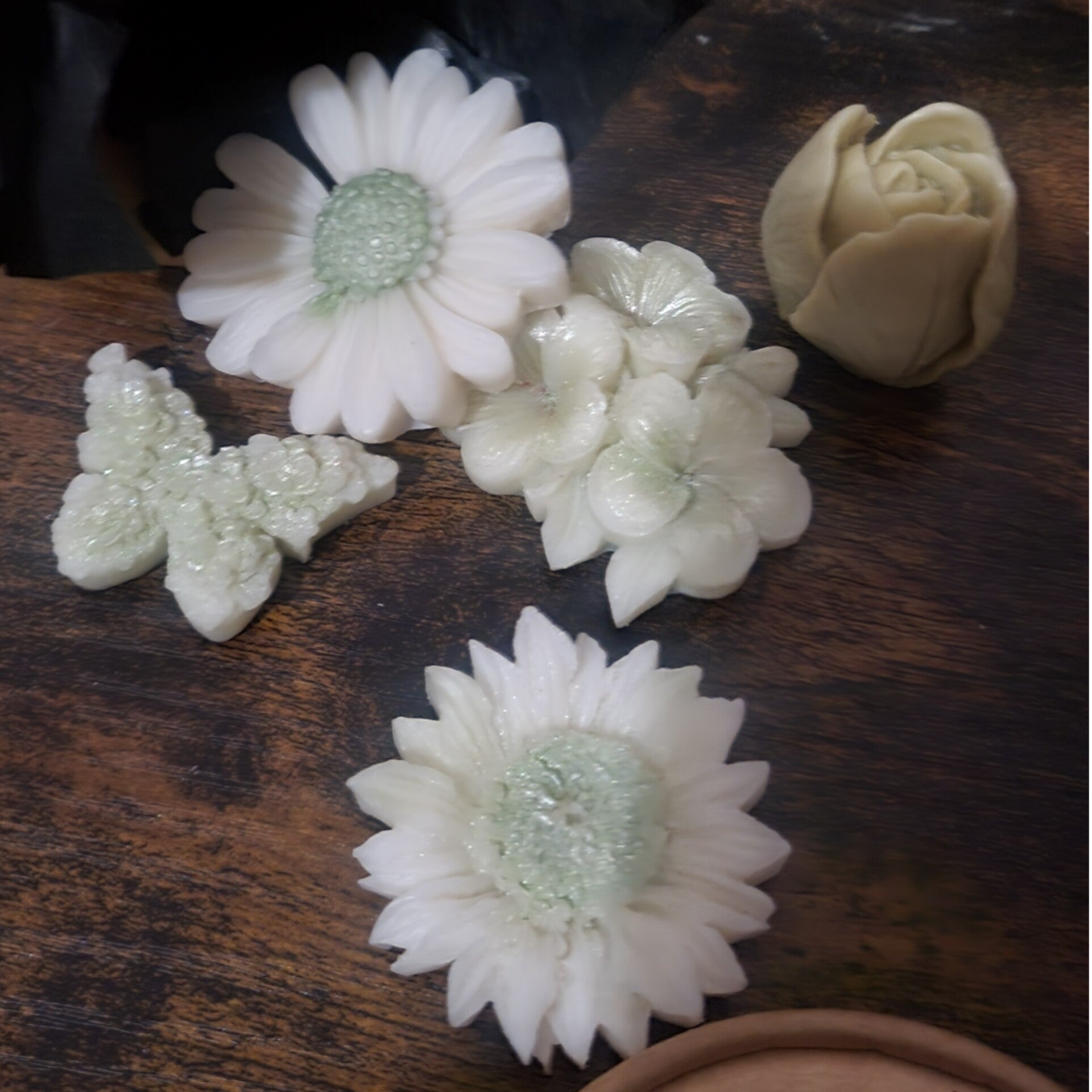 Les fleurs s’épanouissent jusque dans vos fondants parfumés : marguerite, tulipe, tournesol, fleur de cerisier… et même un petit papillon qui s’est glissé dans la collection.