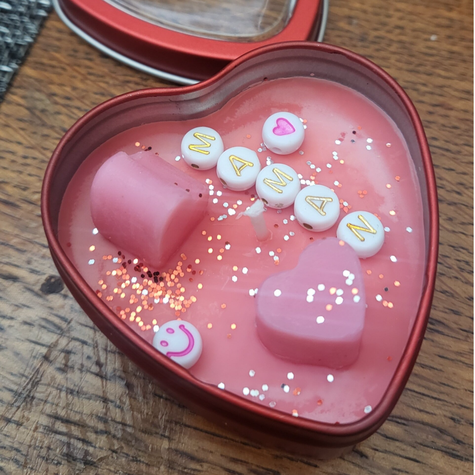 Offrez un moment tendre et magique avec notre bougie en forme de cœur, coulée dans un adorable écrin cœur en métal. À première vue, une délicate bougie rose, douce et élégante. Mais en la laissant fondre, un message caché se dévoile…