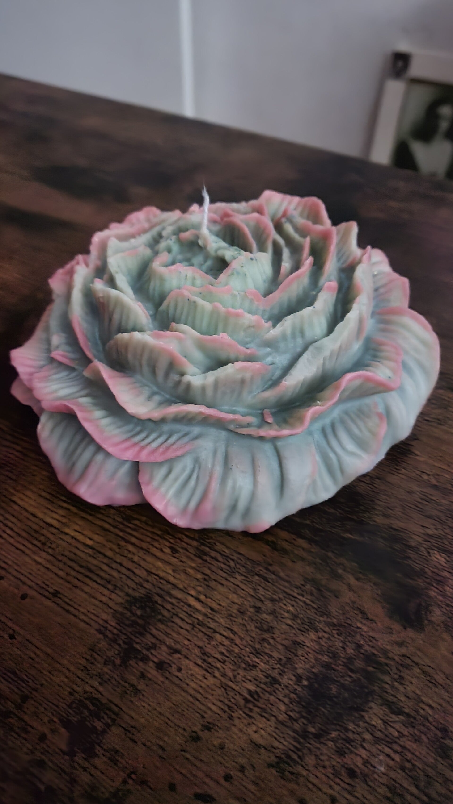 Plongez dans une ambiance romantique avec notre bougie parfumée soigneusement moulée en forme de pivoine. Elle est à la fois une pièce décorative élégante et une source de lumière douce.