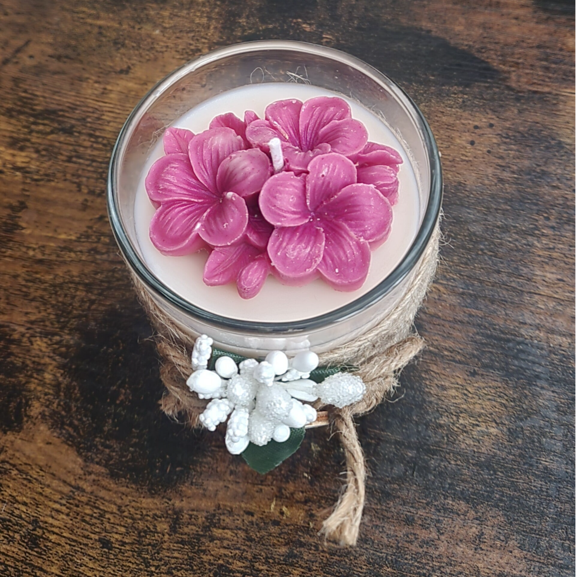 Coulée dans un élégant verre décoré d’une fine ficelle naturelle et d’un petit cœur gravé "Love", cette bougie est sublimée par une décoration florale délicate de fleurs de cerisier.