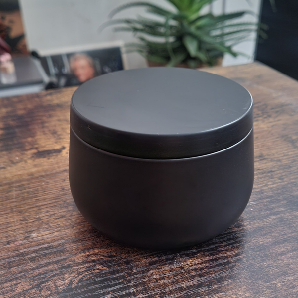 Minimaliste, profonde, précieuse. Obsidienne est une bougie de caractère, pensée comme un objet de calme et de raffinement. Son écrin noir mat légèrement satiné renferme un cœur de cire naturelle soja & coco, soigneusement coulée à la main.