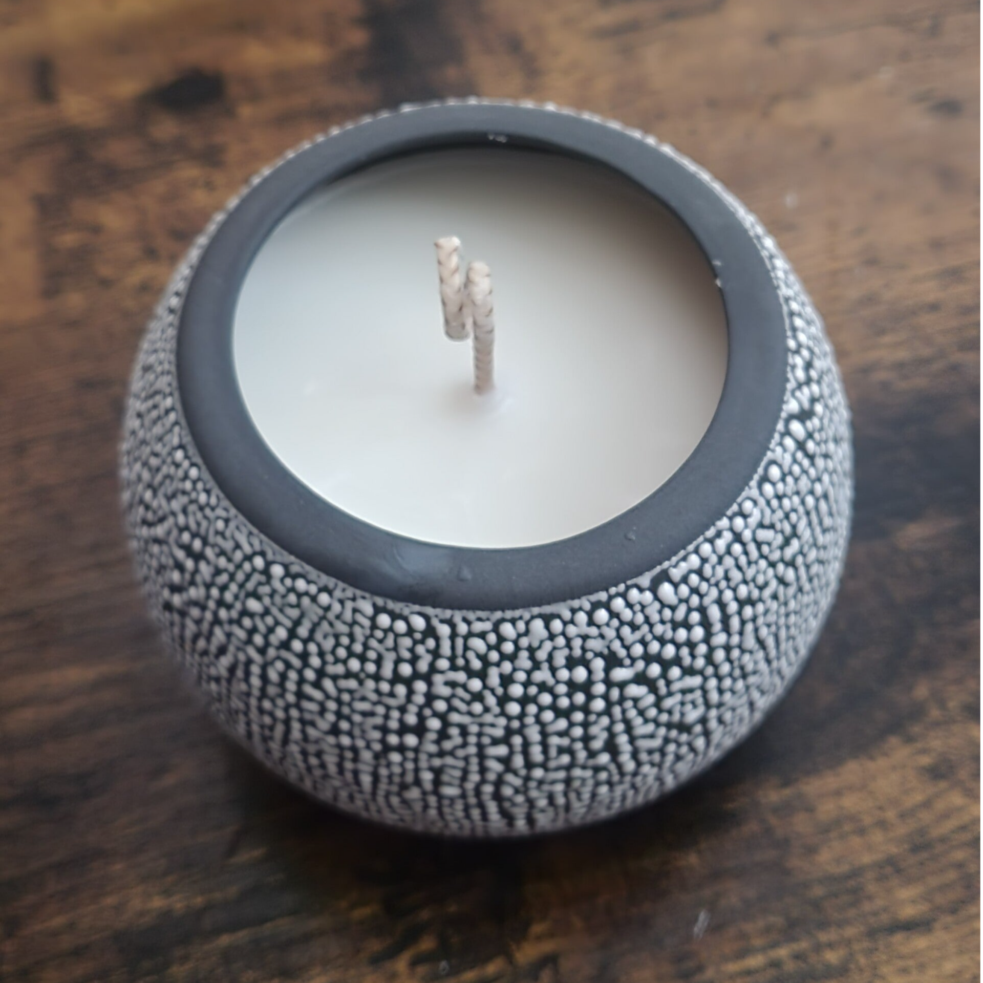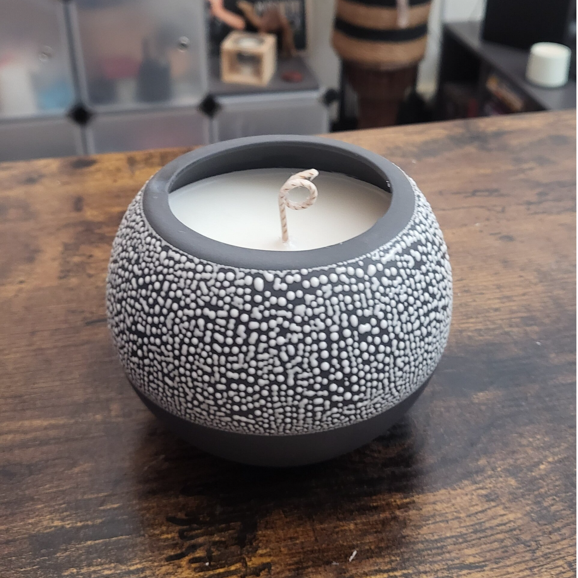 Coulée à la main dans un pot en céramique texturée à l’allure minérale, cette pièce unique invite à la sérénité et à l’ancrage, tout en apportant une touche de caractère à votre intérieur.