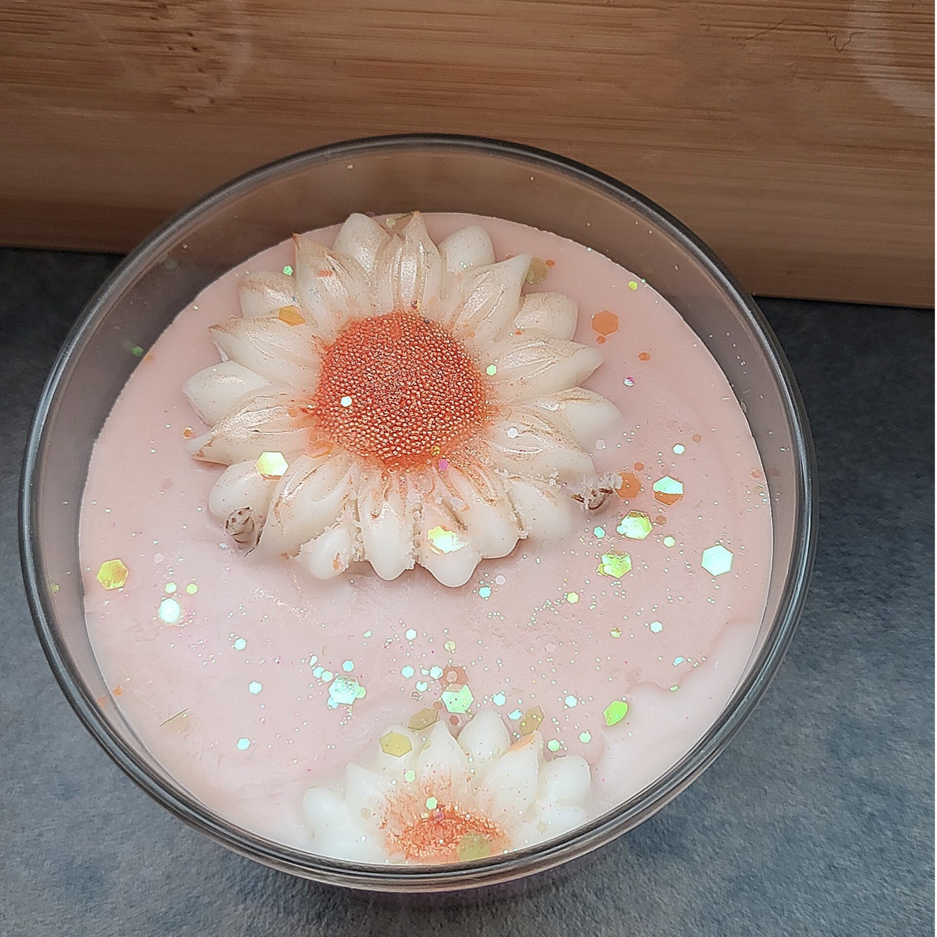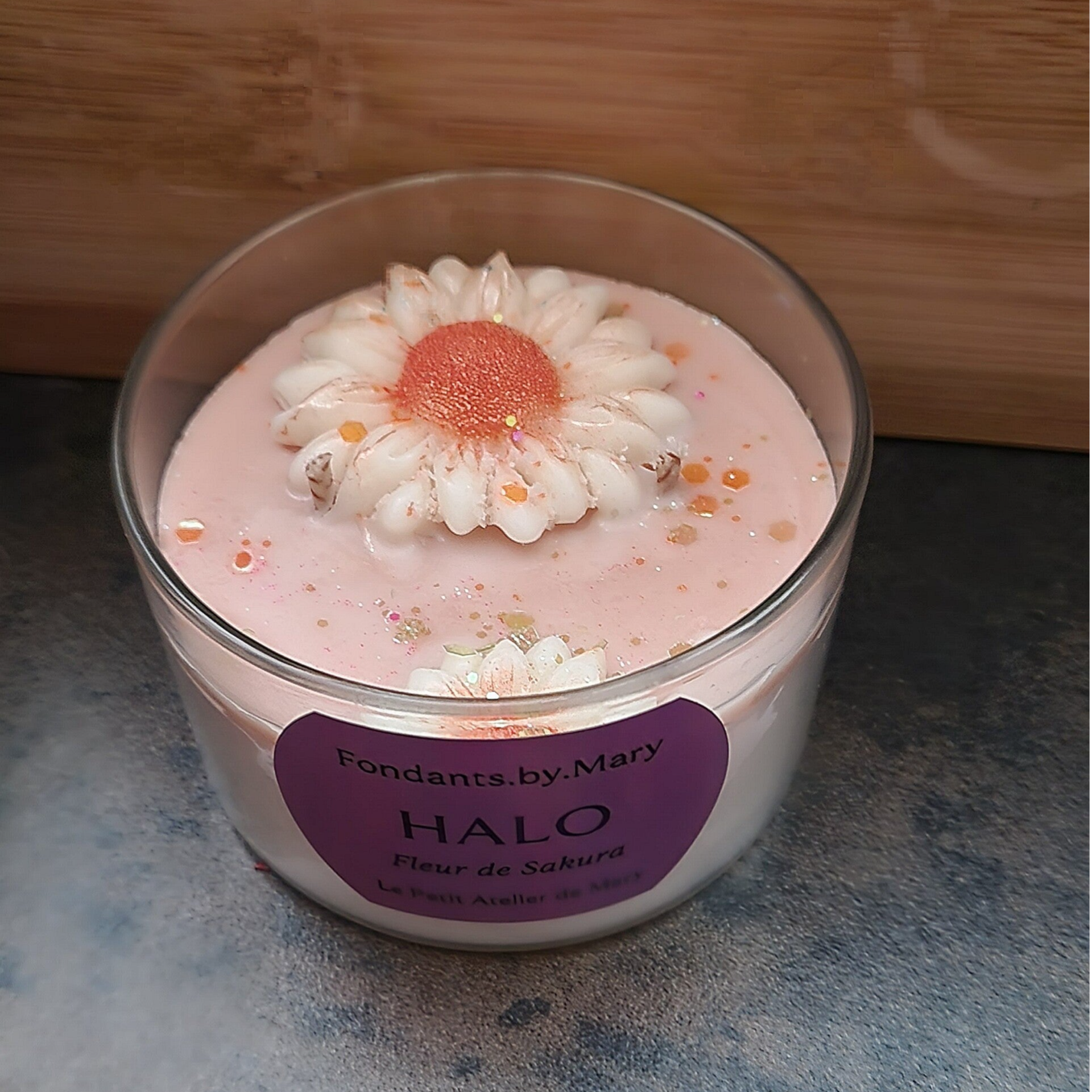 INCI : Soy Wax, Parfum (Fleur de Sakura), Cotton Wick, Mica, Biodegradable Glitter