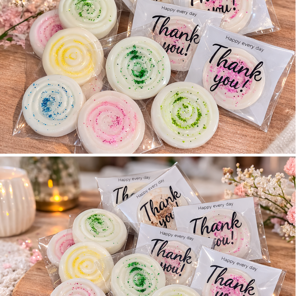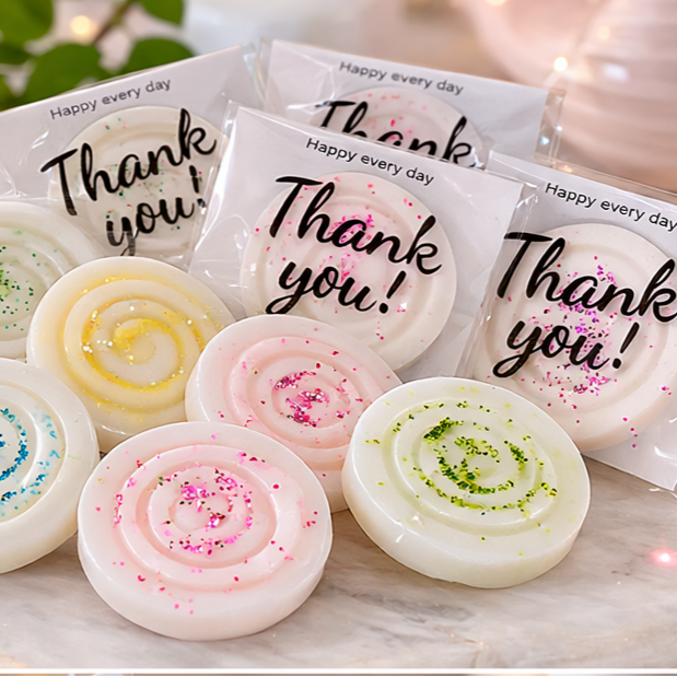 Ces fondants parfumés artisanaux, façonnés en forme de spirale, allient beauté visuelle et plaisir olfactif. Leur silhouette douce et harmonieuse, rehaussée de fines paillettes biodégradables, en fait de véritables petits objets parfumés, à la fois décoratifs et sensoriels.
